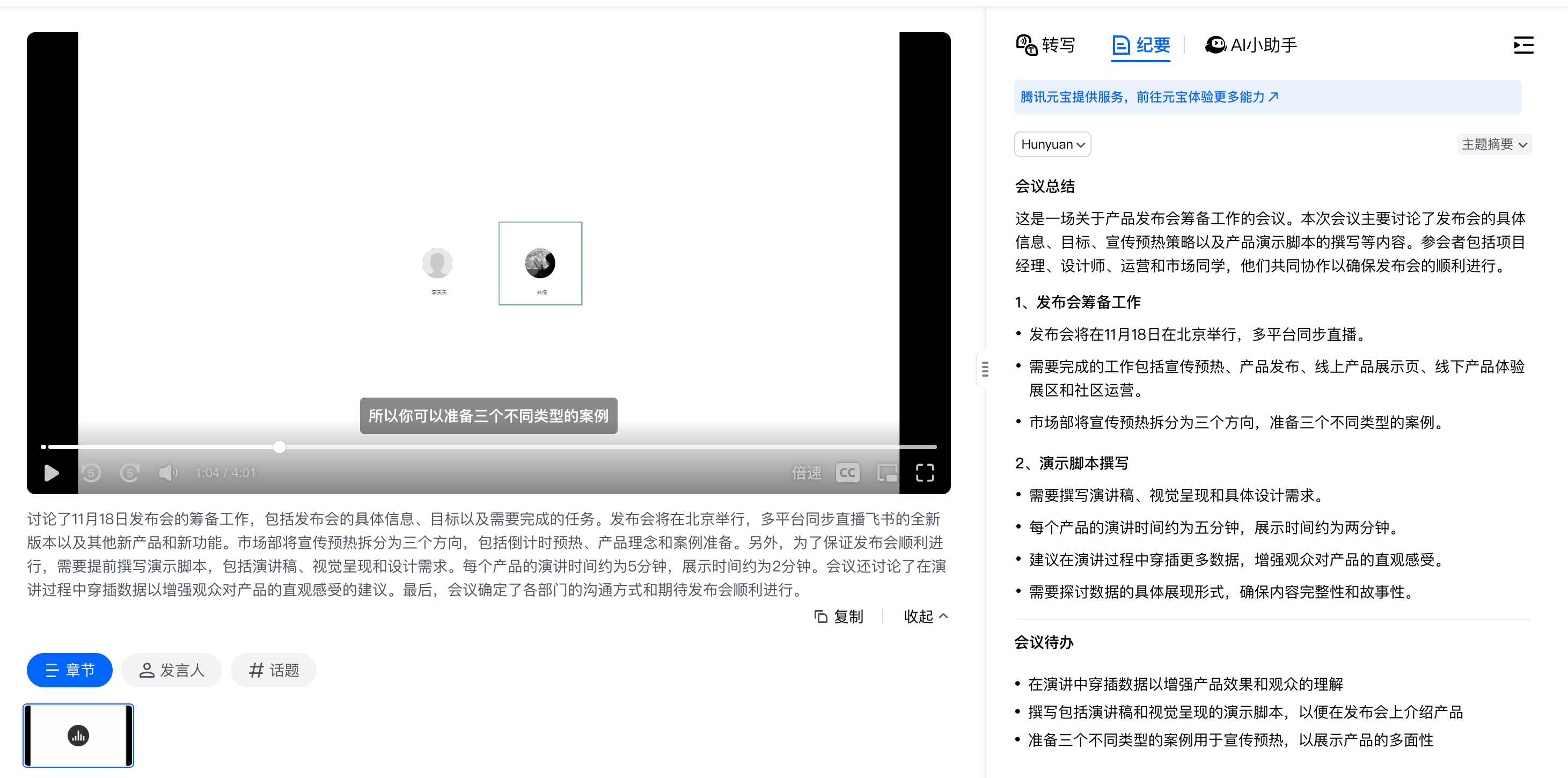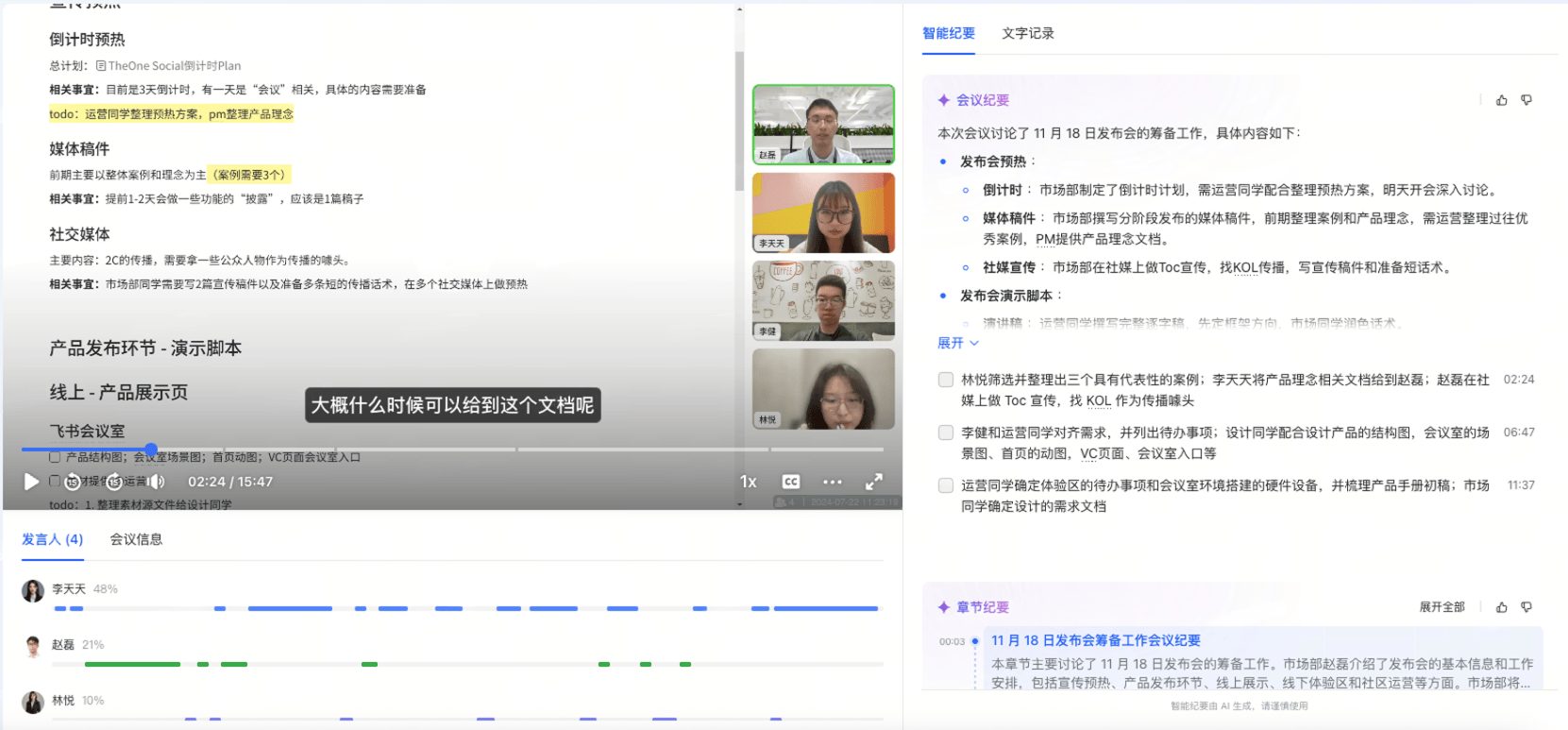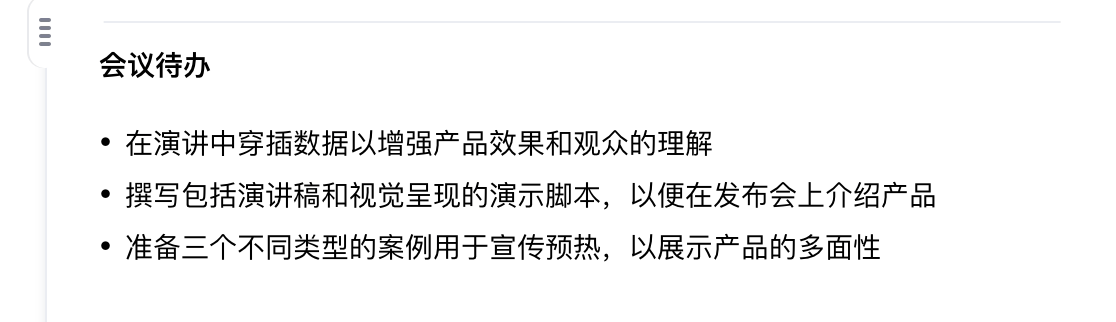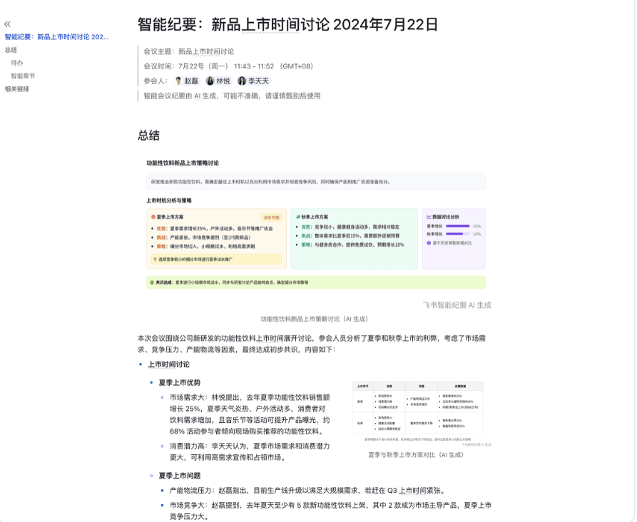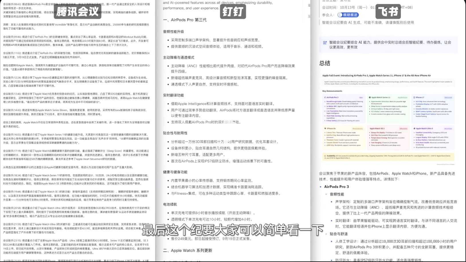 三款软件都能笼盖根本的总结需求,左侧是AI生成的会议纪要,